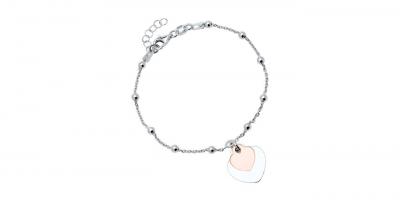 Das eine Herz glänzt in edlem Silber, das kleinere besticht durch seinen Roségoldglanz - einfach nur bezaubernd. Zudem kann das grössere Herz von uns mit einer Gravur versehen werden - perfekt für Initialen. Geschlossen wird das Armband mit einem klassischen Karabiner und es ist in der Länge regulierbar.