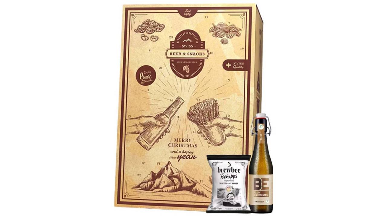 Der Swiss Beer & Snacks Adventskalender vereint das Beste aus zwei Welten: feine Schweizer Biere und herzhafte Knabbereien. Hinter jedem der 24 Türchen entdecken Bierliebhaber handverlesene Spezialitäten aus regionalen Brauereien – von bekannten Klassikern bis hin zu einzigartigen Kreationen kleiner Manufakturen. Dazu passen knusprige Snacks aus der Schweiz wie Nüsse, Chips oder salzige Leckereien. Ein Advent voller Genussmomente – ideal zum Probieren, Entdecken und Geniessen.