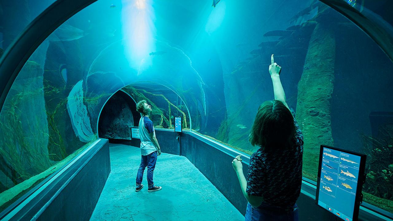 AQUATIS, gelegen in Lausanne, ist ein einzigartiges Zentrum, das ein immersives Erlebnis durch die Süsswasser-Ökosysteme der fünf Kontinente bietet. Auf einer Fläche von 3.500 m² beherbergt AQUATIS mehr als 9.000 Fische sowie rund hundert Reptilien und Amphibien, die in 46 thematischen Aquarien, Vivarien und Terrarien untergebracht sind. Der Parcours lädt zu einer faszinierenden Reise ein, die den Weg eines Wassertropfens durch verschiedene Gewässerumwelten zeigt – vom Rhône in Europa über den Amazonas in Südamerika bis hin zu tropischen Lebensräumen in Afrika und Asien.