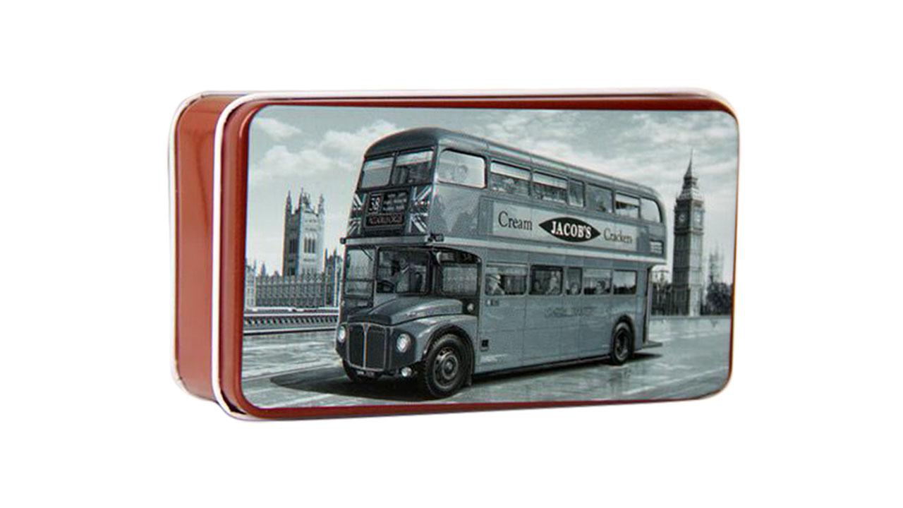 Aufbewahrungsbox mit Sujet von klassischem Londoner Doppeldeckerbus. Beispielweise zum aufbewahren von Keksen oder Tee geeignet.
