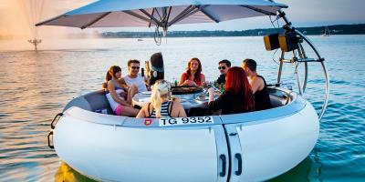 Grillieren mitten auf dem Bodensee? Der Partyring macht's möglich! Bis zu 10 Personen finden auf dem runden Partyboot Platz. Hier finden Sie die ultimative Mischung aus Fun, Grillieren und Chillen.