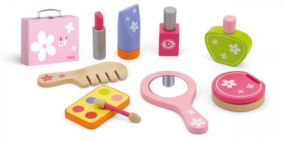 Der Traum vieler jungen Mädchen ist es, sich wie Mama vor dem Spiegel herauszuputzen. Mit diesem edlen Kosmetikkoffer können Sie Ihrem kleinen Mädchen diesen Traum erfüllen. Der Koffer beinhaltet alles, was kleine Prinzessinnen an Schminkutensilien benötigen – von Lippenstift bis Puderdose. Obwohl die Produkte alle aus Holz gefertigt sind, wurden sie den Originalen der Erwachsenen detailgetreu nachempfunden. Mit dem praktischen Koffer sind die Utensilien auch gut zu transportieren. So hat Ihr kleiner Schatz sein Beauty-Set immer griffbereit.