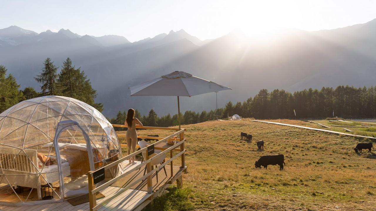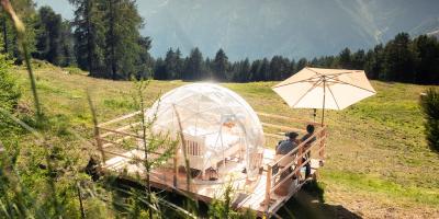 Verbringen Sie eine Nacht unter den Sternen in der exklusiven Bubble-Suite auf der Hannigalp und lassen Sie sich von der majestätischen Walliser Bergwelt und dem atemberaubenden Blick auf das Matterhorn und mehrere 4.000er-Gipfel begeistern. Ob Sie mit der märchenhaften Gondelbahn anreisen oder sich für eine einstündige Wanderung entscheiden – der Weg zur Suite ist ein Erlebnis für sich. Mit drei Bubble-Suiten bietet dieser Rückzugsort zudem genügend Raum für Familien oder kleine Gruppen, die gemeinsam ein besonderes Abenteuer erleben möchten.