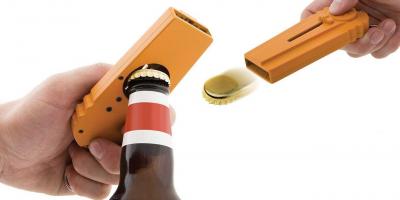Mit diesem praktischen und handlichen Accessoire können Sie Flaschendeckel und Korken auf Knopfdruck bis zu 5 Meter weit wegschiessen.