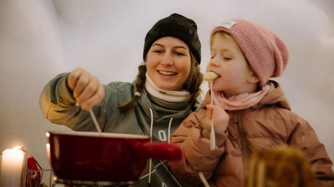 Das Iglu-Restaurant ist nur mit der Bergbahn erreichbar. Bitte beachten Sie den Fahrplan. Abends verkehren Extrafahrten ins Tal. Reservation erforderlich.