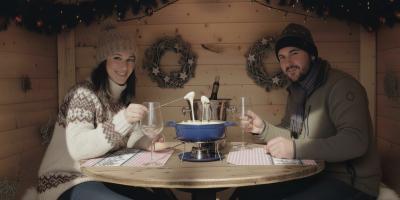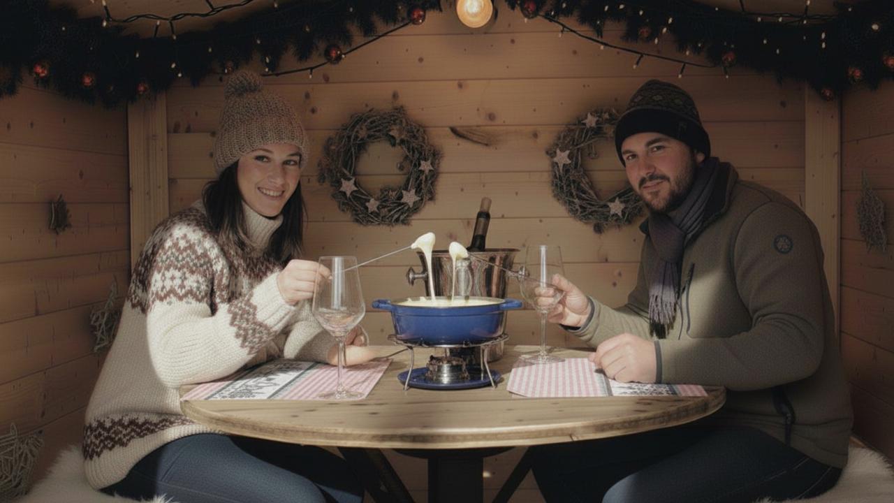 Mitten in Zürich, im stimmungsvollen Winterdorf des Hotel Sheraton im Kreis 5, wartet ein gemütliches Fondue-Erlebnis auf zwei Personen. Serviert wird ein köstliches Käsefondue nach Wahl – klassisch, würzig oder mit einer feinen Weisswein-Note – begleitet von einem Welcome-Drink. Ein genussvoller Abend in winterlicher Atmosphäre.