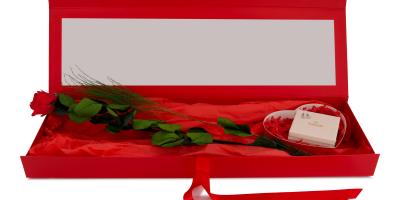 Ein Geschenk voller Liebe: Die stilvolle Geschenkbox enthält eine ewig blühende rote Rose, die für unvergängliche Schönheit steht, und zauberhafte Herz-Ohrstecker von Purelei. Perfekt, um besonderen Menschen eine Freude zu machen.