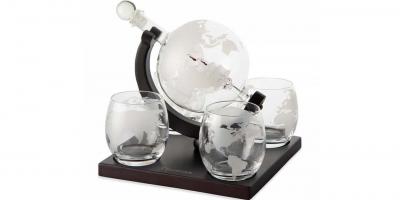 Entdecken Sie die Welt des Genusses mit unserer personalisierbaren Glaskaraffe Globus und den dazugehörigen 4 Drink-Gläsern.