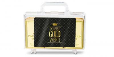 Ach ja: Du möchtest lieber jemanden wertschätzen, den du nicht ganz so gut kennst? Kein Problem, die Barren sind in den beiden Varianten «Sie sind Gold wert!» und «Du bist Gold wert!» erhältlich.