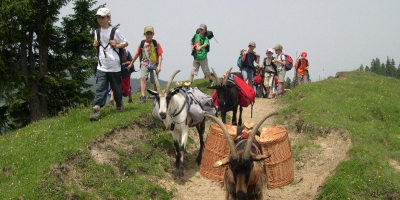 Diese Geschenkidee ist ideal für Tierfreunde und Familien. Mit diesem Gutschein erleben Sie eine halbtägige Trekking-Tour für bis zu vier Personen in der Region Toggenburg. Das Besondere an dieser Trekking-Tour? Sie werden von Packgeissen begleitet, welche auf Ihren Bastsätteln das Picknick transportieren. Bevor es losgeht, lernen Sie die Packgeissen kennen, werden in das fachgerechte Handling der zutraulichen Tiere eingeführt und helfen mit, sie für die Tour vorzubereiten. Anschliessend wandern Sie genussvoll durch alpines Gelände und erfreuen sich an der Begleitung der liebenswerten Ziegen.