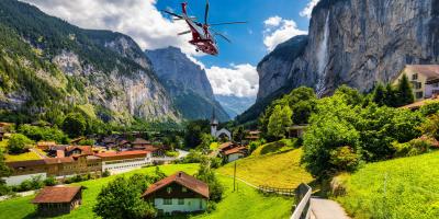 Der Flug führt weiter über das charmante Bergdorf Grindelwald und entlang der grünen Hänge von Wengen, bevor Sie zurück nach Lauterbrunnen fliegen. Geniessen Sie diese einmalige Gelegenheit, die alpine Welt aus einer neuen Perspektive zu entdecken – beeindruckend, ruhig und voller Schönheit.