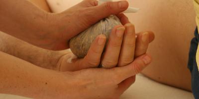 Die Kräuterstempelmassage ist eine angenehme Massage, bei welcher Sie mit Leinensäckchen, die mit einer Kräutermischung gefüllt sind, massiert werden. Der Körper wird zuerst mit einem pflegenden Öl behandelt, danach werden die warmen Kräuterstempel entlang der Muskelstränge, Meridiane oder Lymphbahnen aufgelegt und bewegt. Durch die Wärme können die Kräuteressenzen besonders gut von der Haut aufgenommen werden und tief eindringen. Die Kräuterstempelmassage entspannt die Muskulatur, beruhigt das Nervensystem und pflegt die Haut intensiv. Ein tiefes Wohlbefinden wird erreicht.