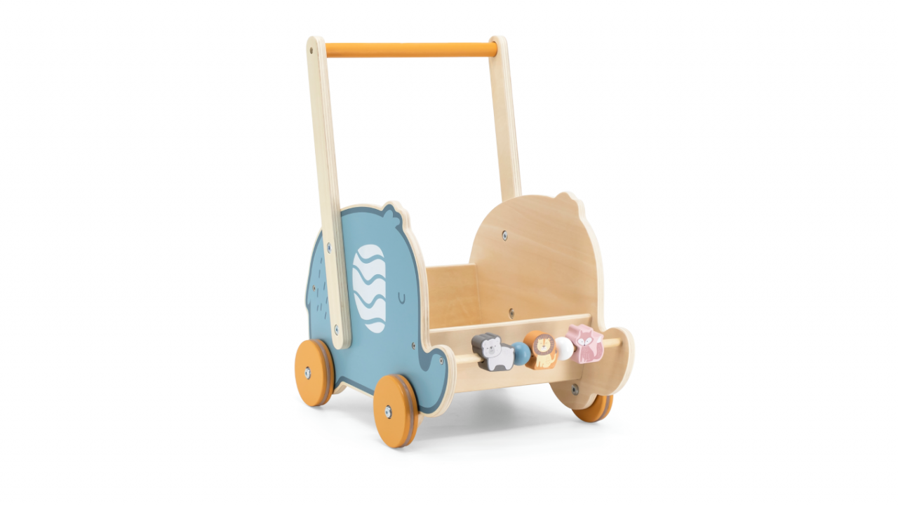 Der charmante Elefanten-Lauflernwagen von Viga unterstützt kleine Kinder ab etwa 12 Monaten auf spielerische Art bei den ersten Schritten. Mit seiner Kombination aus Walker und Puppen-Kinderwagen begleitet er die Kleinen durch ihre ersten Schritte – und fördert gleichzeitig Gleichgewicht, Motorik und Selbstbewusstsein