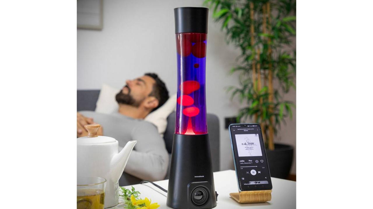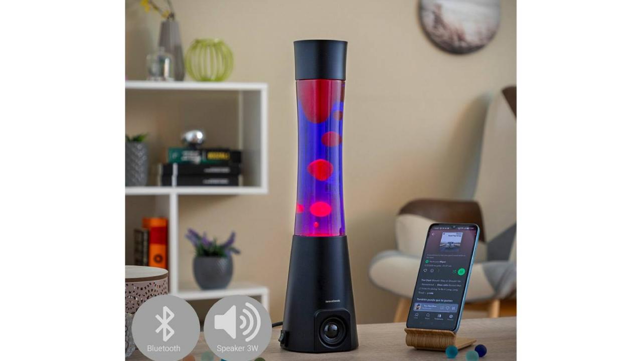 Diese stylische Retro-Lavalampe mit integriertem Bluetooth-5.0-Lautsprecher (3 W) sorgt für eine faszinierende Licht- und Farbshow und schafft im Handumdrehen eine besondere Atmosphäre. Dank Aluminiumfuss und Glasgehäuse bewegt sich das Wachs kontinuierlich und hypnotisch – ideal zum Entspannen, Meditieren oder für stimmungsvolle Partys.