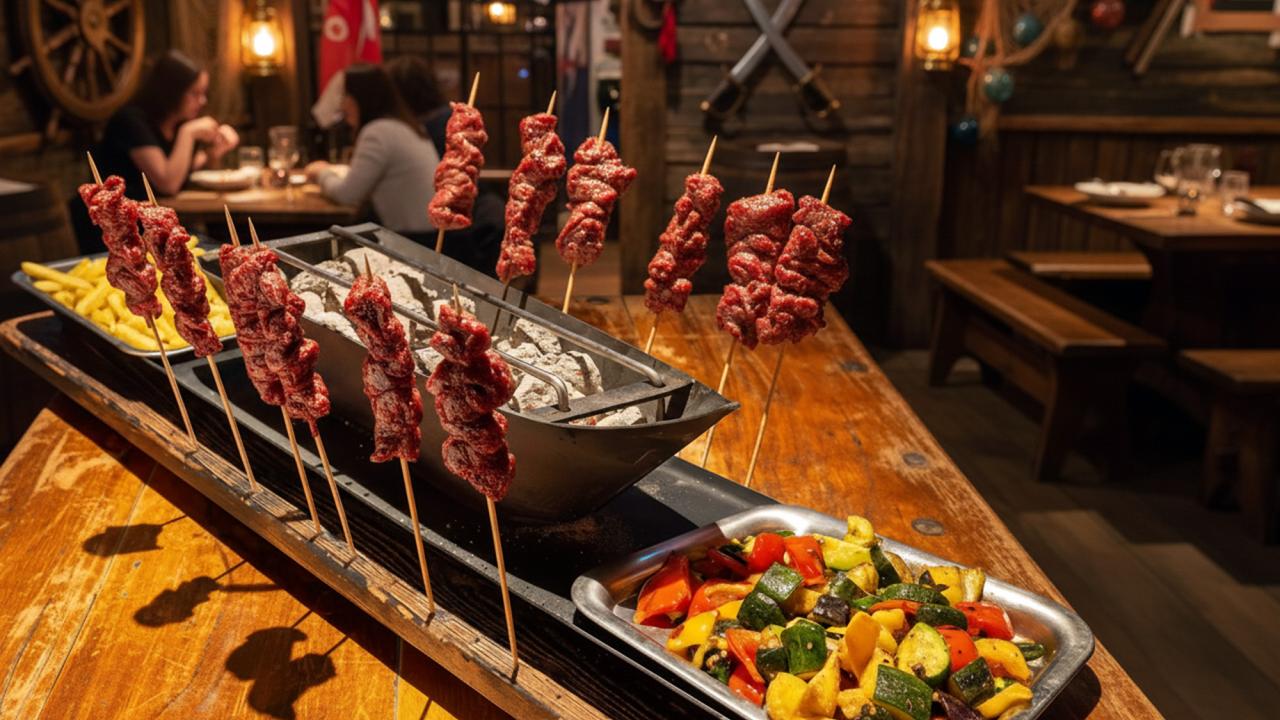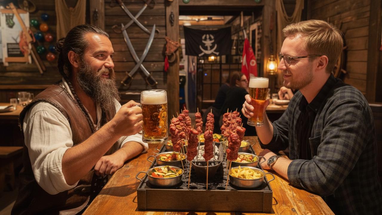 Ein Muss für alle Grill-Captains: Beim Matrosenfrass «Barbossa» wartet ein herzhaftes Piraten-Dinner mit feinsten Fleischspiessen, Saucen, Gemüse, Wedges und Pommes – begleitet von einer Flasche Prosecco.