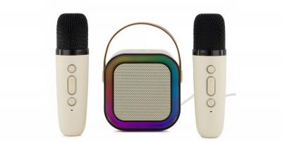 Mini-Karaoke-Maschine für unvergessliche Karaoke-Abende: Ausgestattet mit zwei drahtlosen Mikrofonen für gemeinsames Singen. Die Bluetooth-Funktion ermöglicht das einfache Verbinden mit dem Smartphone sodass eigene Lieblingssongs gespielt und mitgesungen werden können. Dank kompakter Grösse und leichtem Design ist die Maschine überall einsatzbereit – ob zuhause, im Freien oder bei Freunden. Farbige LED-Lichter synchronisieren sich zur Musik und schaffen eine lebendige Atmosphäre. Ideal für Partys, Gesangsübungen oder einfach nur, um gemeinsam Spass zu haben!