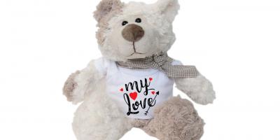 Entdecken Sie unseren entzückenden kuscheligen Plüschbär mit einem Hauch von Romantik!