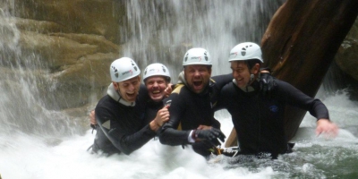 Vorsicht es wird nochmals Nass! Mit Neoprenanzug, Klettergurt und Sicherungsseil ausgerüstet, bezwingen Sie Felsen und Bäume, springen ins glasklare Gewässer oder seilen sich bei schwierigen Passagen bis zu 20 Meter ab. Dieses super spannende Erlebnis fordert all Ihr Geschick! Entfesseln Sie den Survivor in sich!