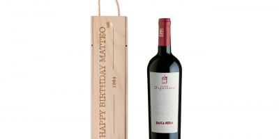 Gestalte deine personalisierte Weinkiste mit einer Flasche Bacca Nera, 0.75l. Ob als Geschenk für einen besonderen Anlass oder für dich selbst, diese edle Personalisierbare Weinkiste mit Bacca Nera, 0.75l lässt keine Wünsche offen. Füge deinen eigenen Text hinzu, um eine aussergewöhnliche Verpackung zu schaffen. Der enthaltene Bacca Nera Wein ist ein köstlicher Rotwein mit fruchtigen Waldbeer-Noten und passt perfekt zu vielen Gelegenheiten.
