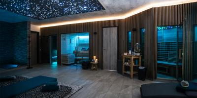 Ob Sauna oder Hammam – der Einstieg in Ihr persönliches Wohlfühlprogramm richtet sich ganz nach Ihren Vorlieben. Im sprudelnden Jacuzzi lösen sich die letzten Spannungen. Für eine belebende Abkühlung stehen eine Regendusche oder ein Kaltwasserbecken bereit. Ein Ruheraum sowie ein kleiner Fitnessbereich runden das Erlebnis ab – eine harmonische Kombination aus Tiefenentspannung und Vitalität.