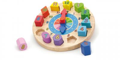 Mit dieser Puzzle-Uhr erlernt das Kind auf spielerische Art und Weise Formen, Farben und die Uhrzeit.