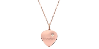 925er Silberkette mit rosévergoldeter Oberfläche inklusive filigranem Anhänger aus rosévergoldetem 925er Silber in Herzform mit Steinbesatz