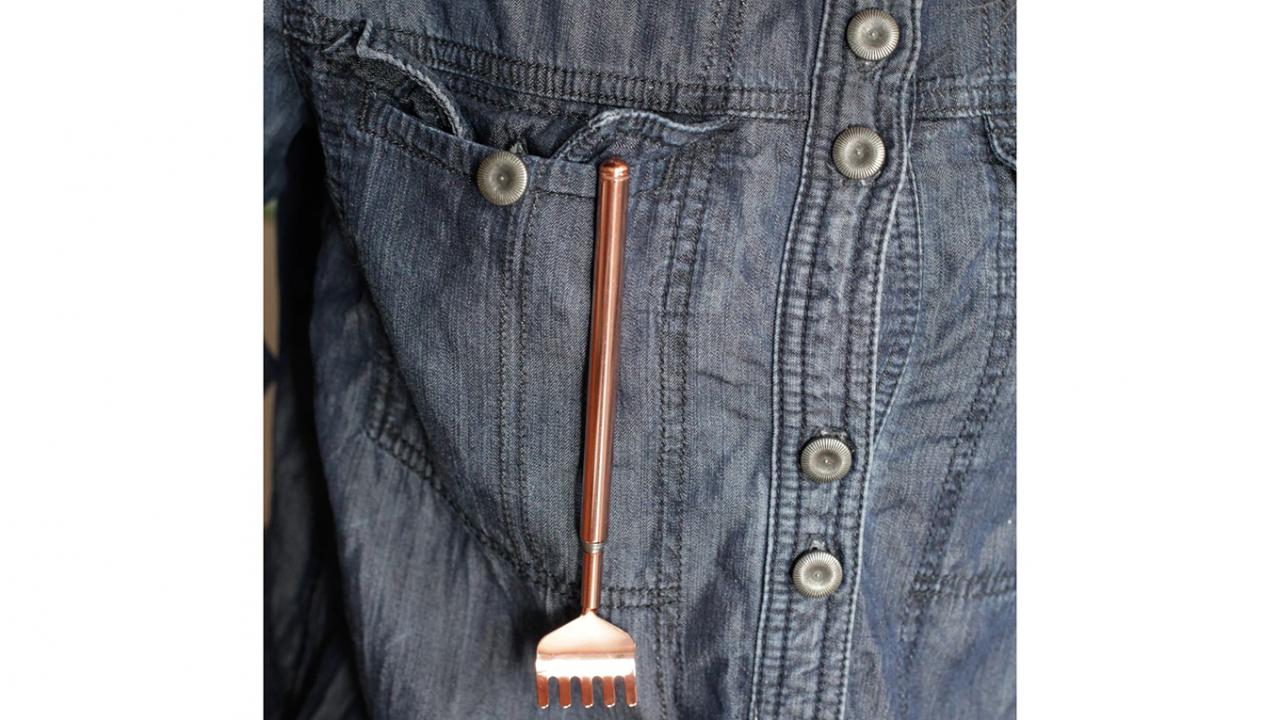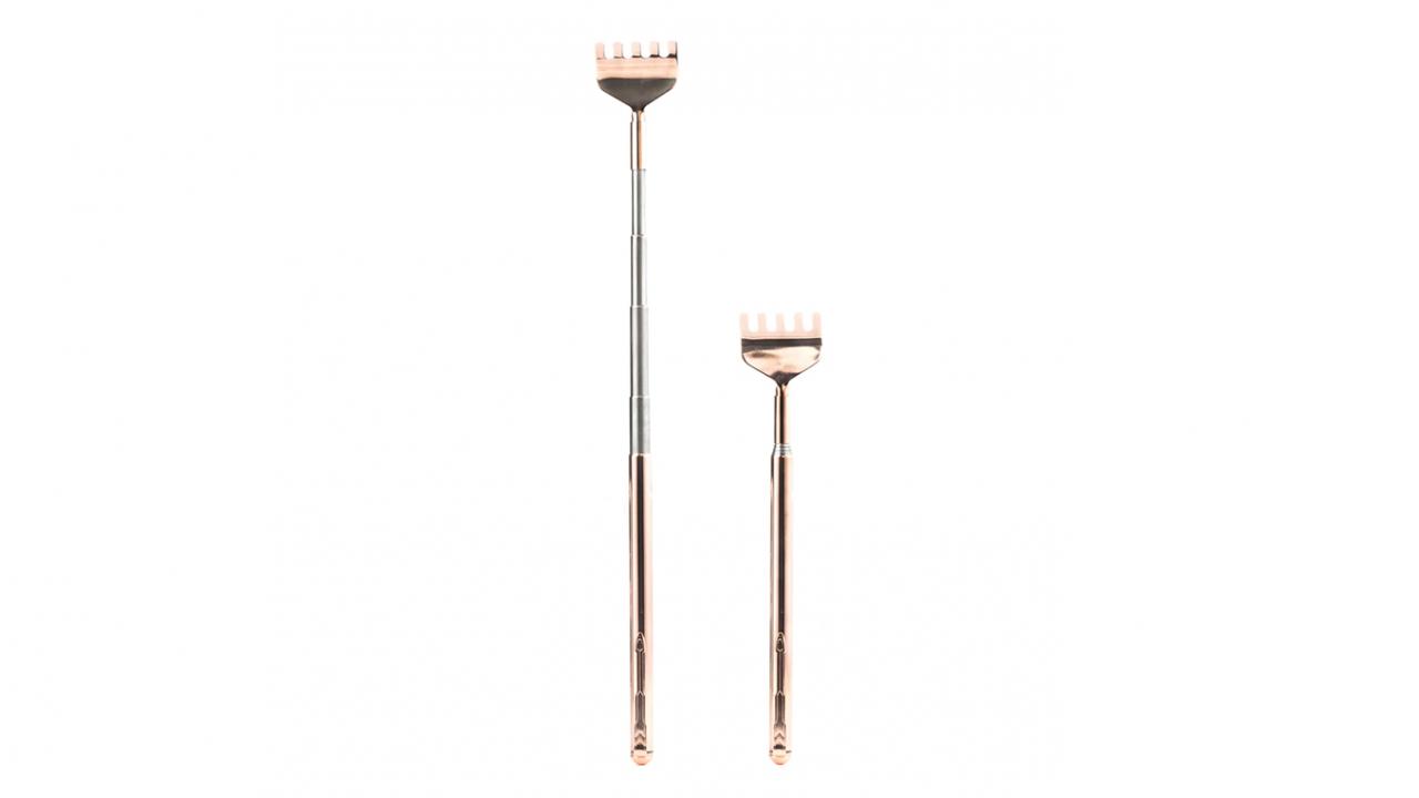 Kennen Sie auch dieses Gefühl, wenn es mal wieder am Rücken kratzt und Sie kommen einfach nicht an die gewünschte Stelle, um das unangenehme Jucken zu beseitigen? Jetzt gibt es diesen edlen und praktischen Rückenkratzer in Kupfer. Dank seiner Teleskop-Funktion können Sie das Tool verlängern oder verkürzen. Ein Gadget, das sich garantiert als nützliche Hilfe erweist!
