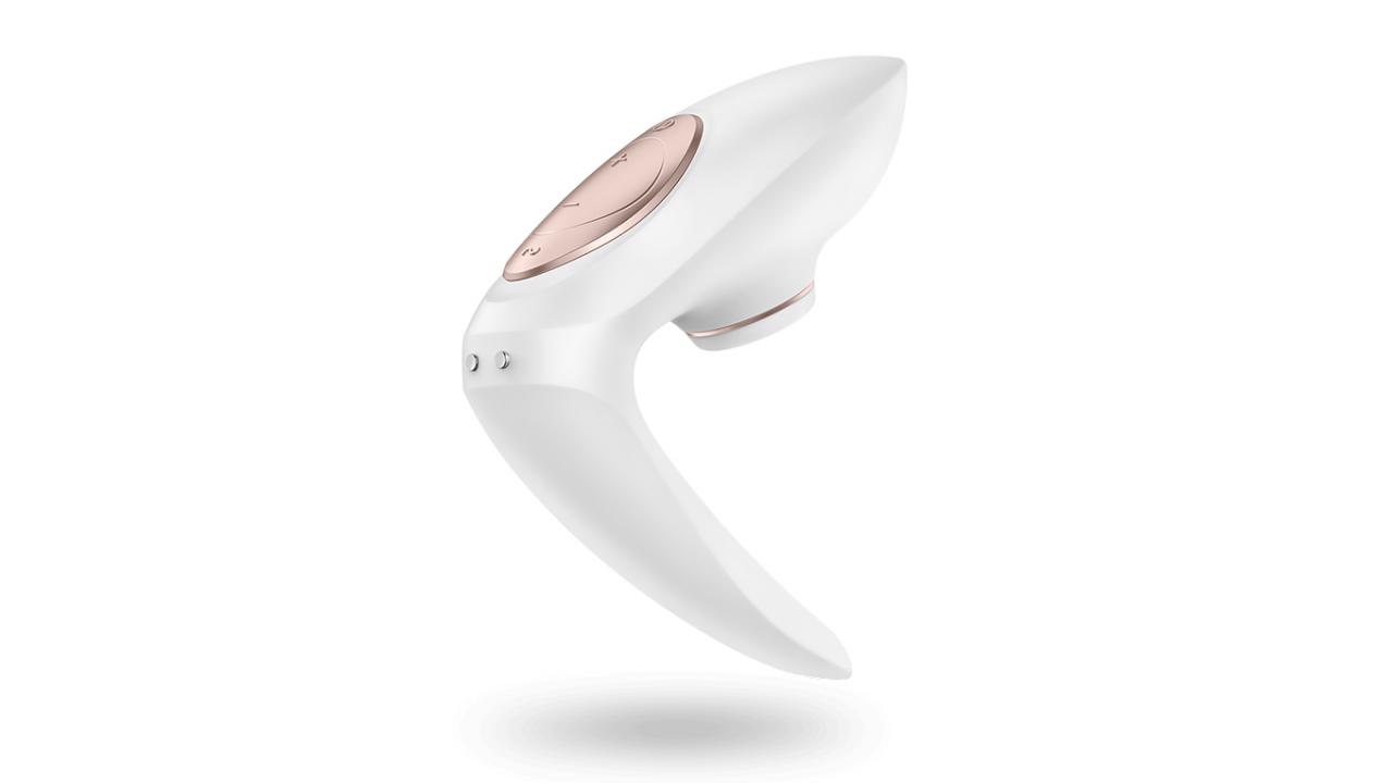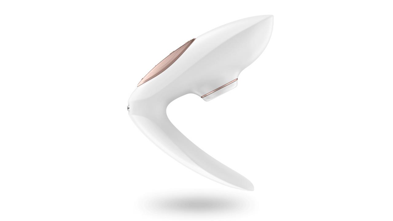 "Die ergonomische Form und seine seidig-weiche Umhüllung aus Silikon machen den Pro 4 Couples zu einem echten Handschmeichler. Hat sein verlockendes Design Euch verführt, kommt Ihr in den Genuss gemeinsamer Ekstase. Der schmalere Schaft wird vaginal eingeführt und vibriert in 10 kraftvollen Programmen, die beim Sex sowohl den Penis als auch die Vagina lustvoll massieren. Während sein bestes Stück das zusätzliche Gefühl der Enge genießt, darf auch sie sich über reizvollen Druck auf ihren G-Punkt freuen. Dabei verwöhnt der außen aufliegende Teil des U-förmigen Vibrators zugleich ihre Klitoris mit effektiven Druckwellen, die an ein Gefühl von oraler Stimulation erinnern. Das verführerische Wechselspiel zwischen Druck und Saugeffekt sorgt in 11 Intensitäten für unvergessliche Gefühlserlebnisse. Der runde Silikonaufsatz umschließt die Klitoris, während sie berührungslos Richtung Höhepunkt getrieben wird.