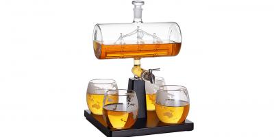 Diese luxuriöse Glaskaraffe in Form eines Schiffes besticht durch ihren klaren, unverwechselbaren Stil, der das Aussehen Ihres Lieblingsschnapses hervorhebt.