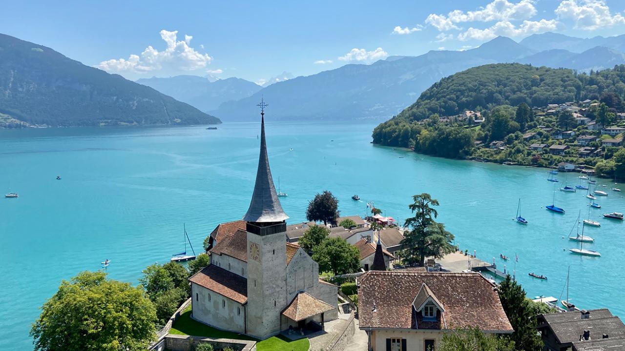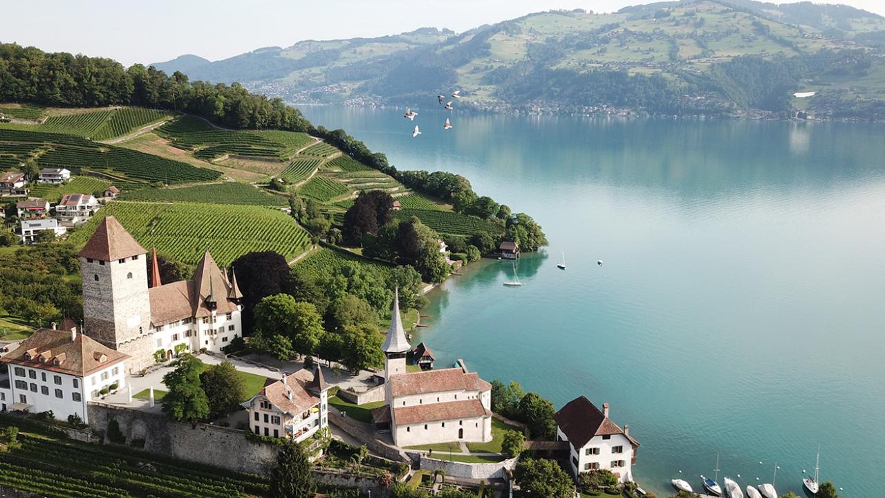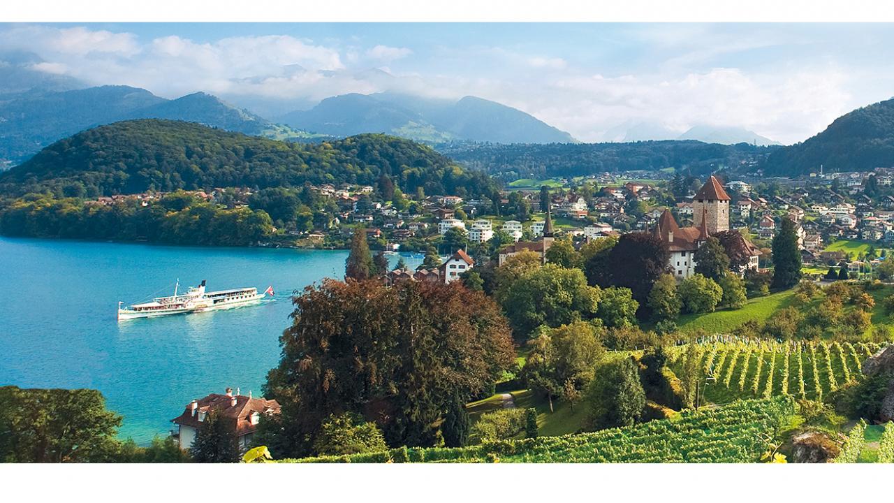 Gönnen Sie sich nach der Führung in unserem Schloss-Café ein Glas Wein aus dem Schlosskeller in unserem Schlosscafé und geniessen Sie den fantastischen Ausblick auf Schlosskirche, See und Berge. Der türkisblaue See mit den kontrastreichen Bergen im Hintergrund und den idyllischen Dörfern am Seeufer lädt zu einer gemütlichen Schifffahrt auf dem Thunersee ein.