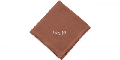 Dieses schöne Nuscheli aus 100% Baumwolle wird mit Ihrem Wunschnamen bestickt.