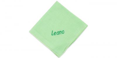 Dieses schöne Nuscheli aus 100% Baumwolle wird mit Ihrem Wunschnamen bestickt.