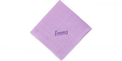 Dieses schöne Nuscheli aus 100% Baumwolle wird mit Ihrem Wunschnamen bestickt.