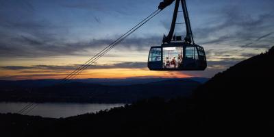 In den milden Sommernächten verwandelt sich die Panorama-Kabine der Luftseilbahn von Weggis nach Rigi Kaltbad in ein romantisches schwebendes Restaurant.