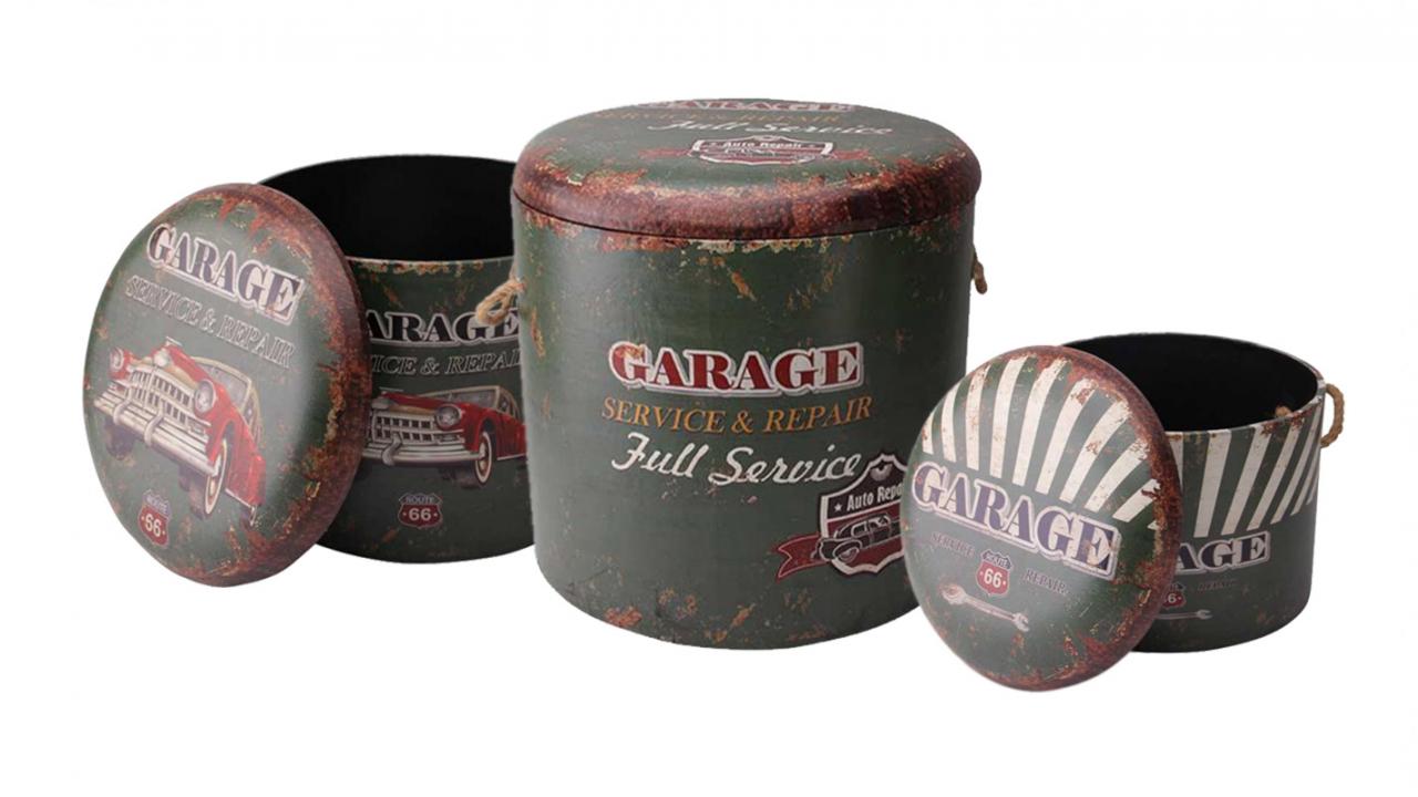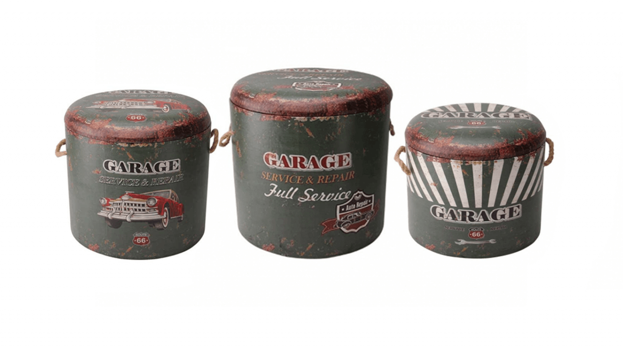 3-teiliges Vintage Sitzhocker-Set. Lässt sich vielerorts einsetzen und passt durch sein stilvolles Design zu nahezu jedem Mobiliar.