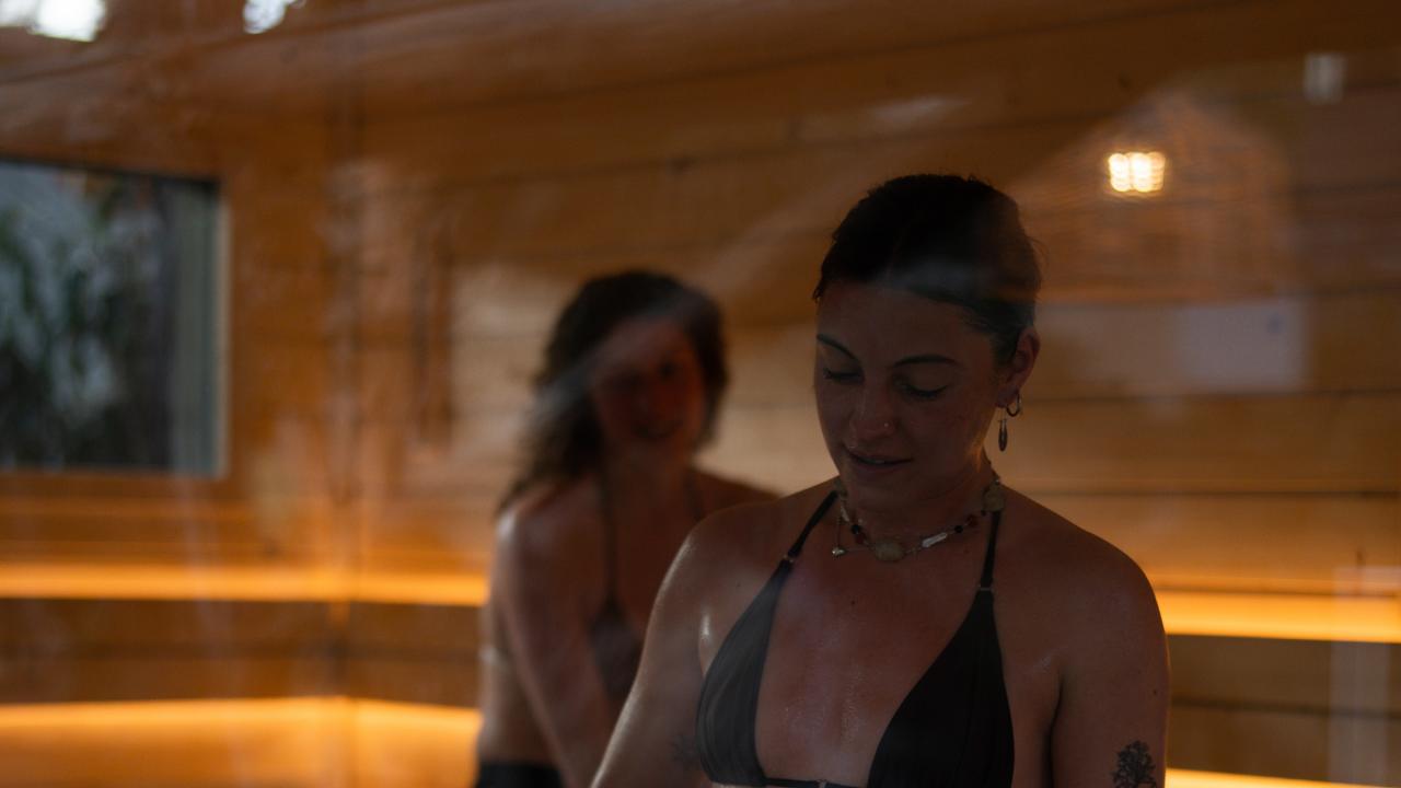 Vier finnische Saunen mit Temperaturen zwischen 70 und 95 °C sowie eine sanftere Bio-Sauna bieten unterschiedliche Wärme-Erlebnisse. Während grössere Saunen eine lebendige, kommunikative Stimmung ermöglichen, laden kleinere Saunen mit Blick auf den Fluss zu ruhigeren Momenten ein. Aufgüsse können selbst durchgeführt werden, zusätzlich finden an ausgewählten Tagen geführte Zeremonien statt.