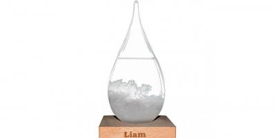 Wunderschönes Design-Sturmglas in Form eines Tropfen mit Gravur.