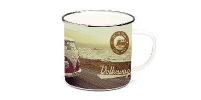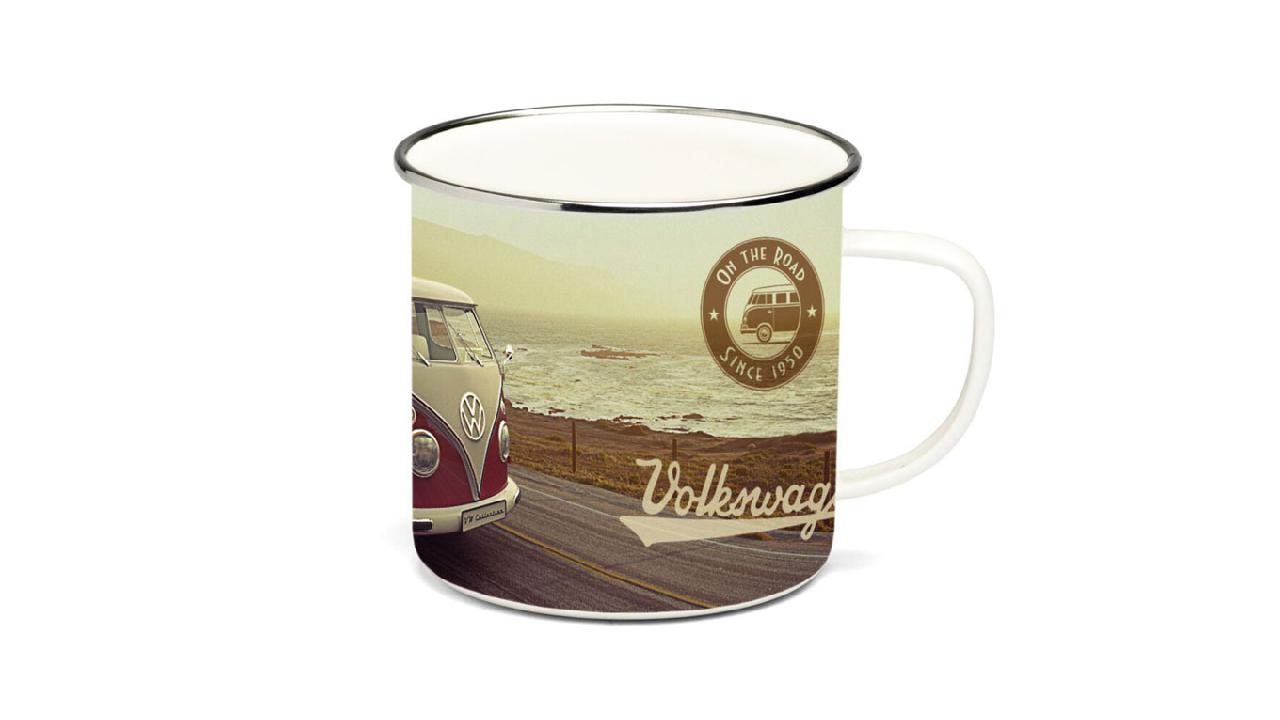 Die emaillierte Tasse im Retrostyle ist nostalgisch und robust. Ein Must-have für jeden Bulli-Fan!