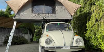 Oldtimer Camping ganz wie in den 60er Jahren. Liefern Sie sich und Ihrer Begleitung ein unvergessliches Wochenende. Sie beginnen Ihre Auszeit mit einer Fahrt im wunderschönen VW Käfer aus dem Jahr 1969 und bauen anschliessend Ihr Nachtlager gleich auf dem Dach des schönen Gefährts auf. Geniessen Sie die Ruhe und die Zweisamkeit, die das Oldtimer Camping Ihnen bietet.