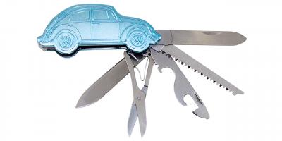 Witziges Taschenmesser aus rostfreiem Stahl in der Optik des legendären VW Käfer.