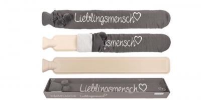 Eine Wärmeflasche ist ein ideales Geschenk - nicht nur an kalten Wintertagen, sondern jederzeit. Sie bringt Wärme und Entspannung in die eigenen vier Wände. Und diese Wärmeflasche kommt darüber hinaus noch in einem einzigartigen Design mit dem Schriftzug "Lieblingsmensch", bei dem der oder die Beschenkte jederzeit an Sie denken muss. So müssen Sie nie wieder auf die Wärme des jeweils anderen verzichten.