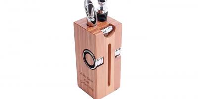 Das perfekte Geschenk für alle Weinfreunde: Das grosse Set besteht aus einem eleganten Block aus edelstem Bambusholz, einem Korkenzieher, 2 Tropfringen, einem Weinthermometer, Flaschenstopfen sowie einem Ausgiesser. Verleihen Sie Ihrem Set durch die individuelle Gravur eine persönliche Note und schenken Sie wahre Freude!