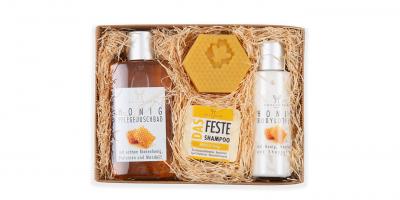 Tun Sie sich selbst oder einem lieben Menschen etwas Gutes, indem Sie dieses einzigartige Geschenkset mit Wellnessprodukten aus Honig verschenken.