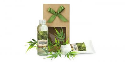 Bezauberndes Wellness-Set mit dem Duft von erfrischender Minze und wohltuendem grünen Tee.