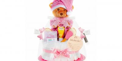 Ein neues Leben hat das Licht der Welt erblickt - und das muss natürlich gebührend gefeiert werden! Diese Windeltorte ist die perfekte Überraschung für die Eltern von einem kleinen Mädchen. Sie finden hier nicht nur genug Windeln, um in den ersten Wochen nicht wahnsinnig zu werden, sondern auch ein süsses Kuscheltier, einen Babytee und einen Futterlöffel. Mit der dazugehörigen Grusskarte machen Sie die Überraschung noch ein Stück persönlicher.