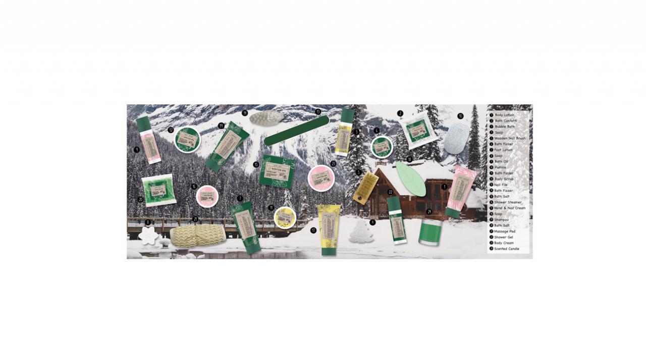 Hinter jedem Türchen dieses Adventskalenders erwartet Sie eine kleine Spa-Überraschung, die Ihren Körper und Ihre Seele verwöhnt. Gönnen Sie sich ein Schaumbad mit sprudelnden Badebomben, pflegen Sie Ihre Haut mit einer nährenden Bodylotion und geben Sie Ihren Füssen, bei einer Massage mit einer gut riechenden Fusscreme, eine Auszeit nach dem Geschenke Shoppingmarathon. Mit diesem Kalender finden Sie auch in der stressigen Vorweihnachtszeit Ihre Momente der Entspannung.