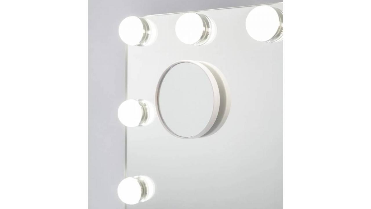 Dieser stilvolle Schminkspiegel in Weiss mit 15 LED-Leuchten und ovaler Basis bietet die perfekte Beleuchtung für Beauty-Routinen. Mit Touch-Tasten lässt sich die Lichtfarbe und -intensität bequem anpassen, und ein 5-fach Vergrösserungsspiegel ist ebenfalls enthalten. Ein ideales Geschenk, das Eleganz und Funktionalität vereint.