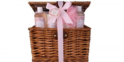 Das luxuriöse Badeset für entspannende Wellnesstage wird dank hübschem Picknickkorb zum perfekten Geschenk!