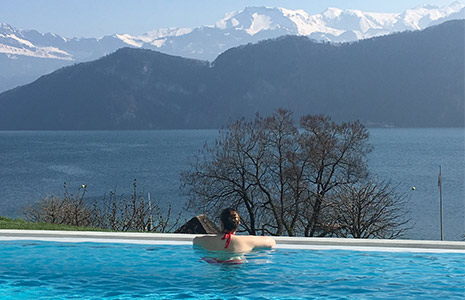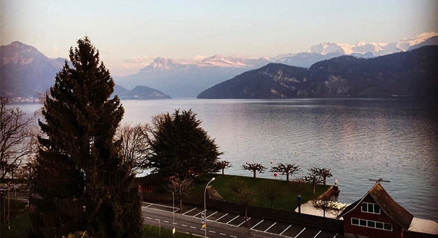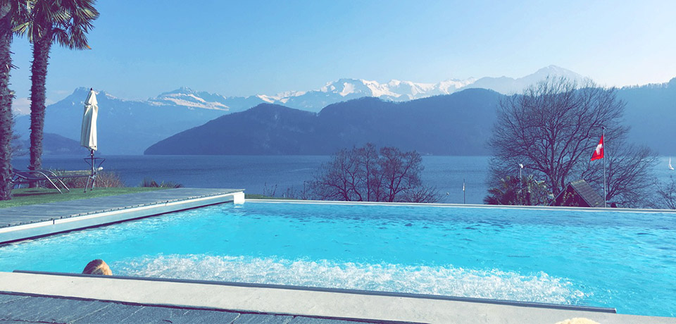 Das Wetter spielte mit und so konnten wir von unserem Zimmer mit Balkon die wunderschöne Aussicht auf den Vierwaldstättersee und die Bergkulisse dahinter bestaunen. Unser Zimmer mit Doppelbett war sehr geräumig und verfügte über ein grosses Badezimmer mit Dusche und Balkon. Durch die warmen Farben im modern eingerichteten Zimmer fühlte man sich sofort wohl. Der Balkon hatte eine umwerfende Aussicht über den See und auf die verschneiten Berge, die sich am Abend während dem Sonnenuntergang rötlich Färbten. Ein romantischer Moment den man perfet zusammen geniessen kann.