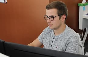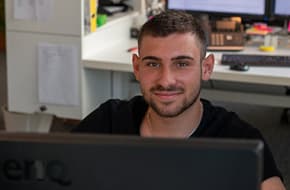 Dank dem angehenden Betriebsinformatiker sind alle Arbeitsplätze technisch top ausgerüstet. In seiner Freizeit lebt er seine Kreativität aus.